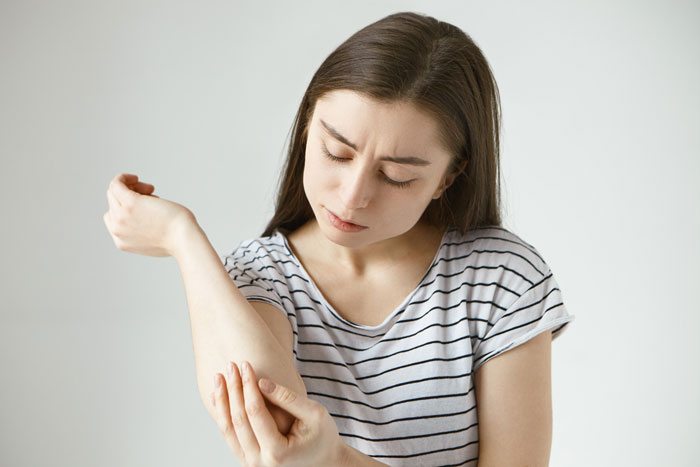 - Da sần sùi ở khuỷu tay hoặc đầu gối